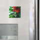 Fleur d'hibiscus rouge avec effet de papier journal appliquée à l'image.