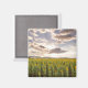 Cette photo présente un champ de tournesols au coucher du soleil.