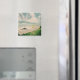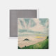 Une aquarelle représentant une colline herbeuse donnant sur un paysage brumeux.