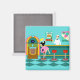 Servez quelque chose de spécial avec ce Retro Soda Fountain Magnet. L'art minimaliste, dessin animé, présente l'intérieur du lieu le plus frais de la ville. C'est une fontaine de soda des années 50, dans toute sa gloire kitsch ! Sur fond de mur d'aqua, on peut voir des affiches annonçant les spécialités de la maison. Une affiche montre un hamburger et une bouteille de pop pour le prix d'affaire de 15 cents. L'autre affiche montre deux boules de crème glacée dans un cône de sucre pour seulement 5 centimes. Avec des prix comme ceux-ci, difficile de regarder sa taille ! Un réducteur de soda très compétent est d'habiller le comptoir turquoise avec des accents jaunes. Le jeune homme qui a une forte éthique du travail tient un cône de crème glacée avec une seule boule de crème glacée jaune citron—bien que, pour être honnête, il pourrait être de l'ananas ! L'homme nettoyé porte une chemise blanche immaculée avec une cravate noire et arc et un casquette blanc aux accents rouges. De l'autre côté du comptoir, on aperçoit trois tabourets de bar rouge et chrome. Perché sur l'un des tabourets est une adolescente blonde dont la bouche arrose sûrement. On ne sait pas si sa bouche arrose le cône glacé qui se dirige vers elle ou le jeune homme industrieux qui le sert. Elle porte une jupe de caniche rose et un toit noir ajusté à la forme. Ses serrures jaunes sont retirées dans une queue de cheval classique. A côté de cette jolie clientèle se trouve un juke-box coloré et classique, qui est composé de brun, de grains de bois, de boiseries et de néons colorés. Mieux encore, il est sûr de présenter tous les plus grands succès rock et roll de l'époque ! Le sol de ce glacier moderne du milieu du siècle est un aqua et turquoise motif en damier qui crie juste pour que quelqu'un puisse essayer toutes les dernières danses.