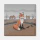 Colourful artwork of a fox in the English countryside, with old timber-framed houses in the background. Perfect for anyone who loves folk art.