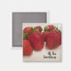 Une image délicieuse et luxuriante de fraises fraîches dans un closeup extrême sont à la maison sur votre réfrigérateur. Fraises rouges aux tiges vertes isolées sur une assiette blanche. Fruit mûr frais avec détail de texture et de graines visibles. Profitez de toute la douceur !