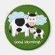 Un mignon aimant frigo montrant une vache-mère et son veau avec le texte "Bonjour !". Ce produit peut être customisé en changeant la couleur et / ou le texte de l'arrière - plan.