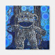 Aimant Funky Blue Sock Monkey Circles Bubbles Pop Art