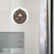 Cet aimant présente un dessin d'un papa qui est un monstre de café. Son visage est à l'intérieur d'une grosse goutte de café et il a une langue déplaisante et commence à devenir chauve. Le sucre, le lait, le café et une cuillère l'entourent, tout ce dont il a besoin pour sa boisson préférée. Le texte marron clair dit, "Papa aime le café".
