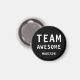 Funny Team Awesome Black Personalized Name Magnets features the text "Team Awesome" with your personalized name below on a black background. Personalize by editing the text in the text box provided. Designed for you by ©Evco Studio www.zazzle.com/store/evcostudio