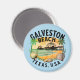 Aimant frigorifique avec une vignette de style rétro de la plage de Galveston, au TX. Disponible sur une variété de vêtements et d'accessoires.