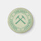Géologue - aimant couleur parchemin avec lettrage de style collégial vert et marteaux de roche croisés.