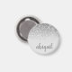 Customisé monogrammed nom chic fun moderne, chic et élégant brillant parties scintillant argent girly Ajouter Votre nom Magnets ronds sont personnalisés et parfaits pour Sweet 16, 1er, 21e, 30e, 40e, 50e, 60e, 70e, Anniversaire, Mariages, Quinceanera, Fête des mariées, Bachelorette Party, anniversaire, fête des mères, Saint-Valentin, cadeau de vacances ou Baby shower.