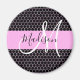 Glam et girly noir et rose abeille métallique motif nom monogramme et aimant initial. Votre nom personnalisé et votre monogramme sont écrits dans un élégant script en lettres blanches et noires avec un arrière - plan rose. Vous pouvez modifier la couleur du texte, le style et la taille de police à l'aide de l'option personnaliser.
