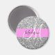 Glam et girly rose et gris / argent parties scintillant scintillent le nom de monogramme blanc et l'aimant initial. Votre nom personnalisé et votre monogramme sont écrits dans un élégant script écrit à la main avec un arrière - plan rose. Vous pouvez modifier la couleur du texte, le style et la taille de police à l'aide de l'option personnaliser. Un cadeau d'anniversaire ou de Noël parfait !