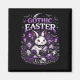 A charming Gothic Easter scene blends dark fantasy and cute whimsy, featuring a wide-eyed bunny amid skulls, candles, and enchanted purple eggs.