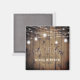 Mariage de pot en bois rustique Enregistrer l'aimant Date - Lit 'Enregistrer la Date' en lettres courbes, rustiques, puis 'Pour le Mariage de ' ci-dessus les noms du couple et la date du mariage en bas dans les lettres modernes. Décoré au sommet avec des lumières scintillantes romantiques et rustiques et des jarres de mason suspendues. Avec des planches rustiques en bois de grange arrière - plan. Mariage rustique, mais moderne enregistrer les annonces de date. Envoyez des Magnet Réservez la date personnalisées aux invités pour les préparer à votre mariage campagnard rustique. Conception parfaite du bois de campagne pour les thèmes mariages de bocal de mason, mariages de grange, mariages de jardin, mariages campagnards, mariages extérieurs décontractés, etc. Deviendra un aimant de réfrigérateur memento personnalisé ou une décoration pour le bureau. Nous avons d'autres Magnet Réservez la date dans notre boutique Zazzle.com/angela65.