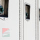 Coins en diagonale vert menthe et corail avec centre en chevron gris