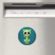 Cette adorable chatte verte est décorée de tourbillons et de motifs à points. Des pédales de fleurs jaunes entourent les yeux noirs purs dans la tradition du Jour des crânes de sucre morts. Le chat est assis, regardant vers l'avant avec sa queue agitant dans l'arrière - plan. La tête surdimensionnée est assise sur un corps minuscule qui crée une apparence ludique et caricaturale. Une étoile à cinq points se trouve au milieu du front du chaton, tandis qu’un coeur rouge et jaune vif apparaît au centre de la poitrine. Une ombre tombe sur l'arrière - plan bleu profond qui fait apparaître le design flotter juste au-dessus de la surface de cet aimant. Ce mignon petit chat est un design amusant et élégant inspiré par les beaux motifs du jour des crânes de sucre morts.