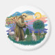Saint patron des animaux et personnages aimés qui croisent des lignes confessionnelles, Saint François est représenté ici avec un Greyhound italien crème. La figure de Saint François elle-même a été adaptée du chef-d'oeuvre de Giotto du XIVe siècle et un nouvel arrière - plan a été créé par Jean Fitzgerald