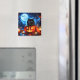 L'aimant est présenté avec une impression d'art Halloween d'un chat noir assis dans la citrouille.