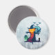 Un aimant avec une illustration d'halloween cool. Placez-vous sur un arrière - plan gris. Un grand épouvantail avec une tête de citrouille, portant un casquette de sorcières. Il a un sourire menaçant portant des robes en lambeaux et se tient dans un cimetière avec un corbeau qui crie sur son bras. Les chauves-souris qui volent au loin, une pleine lune dans l'arrière - plan et un hibou solitaire aux yeux brillants se trouvent sur une pierre tombale.