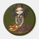 Un tableau humoristique d'Halloween - j'ai peint cette beauté ailée au crépuscule - il y a un crépuscule fumé dans l'air alors que le soleil invisible se couche. Les arbres nus donnent un goût de fraîcheur dans l'air. Il y a aussi un grand et beau Jack O'lantern, grinçant malicieusement dans les genoux de sa robe rayée élaborée. Ma propre peinture acrylique originale.