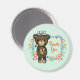 Un aimant de remerciement avec un joli dessin d'un ours en peluche doux tenant une petite fleur jaune. Entouré d'une décoration fleurie, de feuilles, de sprigs et de coeurs.