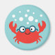 Une joyeuse mascotte de crabe aux yeux grands. Il pose avec ses grosses griffes en l'air, mais il est très amical et mignon. Il aime porter de grosses lunettes élégantes parce que cela lui donne un look et un style uniques, donc il pourrait être un crustacé hipster moderne.