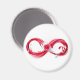 Infinity symbole of continuous stream of red pouring into glass glass glass on white background.