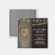 Initiales sculptées Vieux mariage de chêne Save The Date Magnets - présente un ancien arrière - plan en bois avec un vieux chêne et des lampes à cordes. Voir la collection complète ci-dessous.