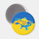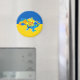 Une carte de l'Ukraine aux couleurs jaunes et bleues du drapeau. Au milieu se trouve une couronne de fleurs en forme de coeur.