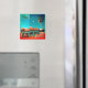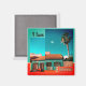 Une photo colorée d'une ville espagnole avec un bâtiment traditionnel, une lune de croissant et un palmier. Valence, Alicante.