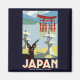 Affiche de voyage Art Déco vintage pour le Japon montrant un Cerf au premier plan et la porte Torii au Sanctuaire Itsukushima.