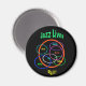 Pour les amateurs de jazz, cet aimant est une célébration du meilleur des époques bebop et post-bop. Des cercles colorés de rouge, bleu, violet, blanc et turquoise entourent quelques-uns des grands musiciens. Tous sont composés de texte jaune et vert sur un arrière - plan noir pur.