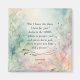 Cette aquarelle présente des plantes délicates dans des tons doux de bleu, vert et corail, créant une atmosphère sereine et rêveuse. Le doux mélange des couleurs évoque un sentiment de tranquillité et d'harmonie. Le verset inspirant de la Bible, Jérémie 29:11, est au centre de cette composition, élégamment exposée, nous rappelant l'espérance et le dessein divin. L'ensemble est stimulant et apaisant, ce qui en fait un complément parfait à tout espace qui a besoin d'encouragement et de sérénité. Cette oeuvre capture l'essence de la nature et de la foi d'une manière visuellement étonnante.