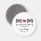 Le chic original et totalement geek est ce mignon gamer Save the Date Magnet avec un contrôleur de jeu vidéo avec des boutons bleus et un avec des boutons roses. Un coeur au milieu connecte les deux contrôleurs. Ce nerdy enregistrer l'aimant de date est parfait pour le couple de jeu. Facile à customiser, il suffit d'ajouter les détails de votre mariage. Cliquez sur "Customiser" pour trouver d'autres options de personnalisation.