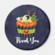 Un aimant de remerciement avec un cupcake d'Halloween avec un gros œil et d'autres éléments effrayants variés.