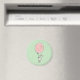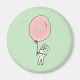 Un aimant rond avec un lapin géant tenant un gros ballon rose flottant dans l'air. Placez-vous sur un arrière - plan vert clair.