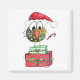 Ceci est une peinture originale en techniques mixtes représentant un oiseau de Noël sur une pile de cadeaux.