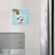 Un aimant drôle et mignon avec un thème de noël. Un chat minable et espiègle. Elle regarde une décoration d'arbre de noël accrochée à une branche de pin en se demandant si elle devrait jouer avec ou non. Texte dit Joyeux Noël dans une police fantaisiste. Placez-vous sur un arrière - plan bleu avec des flocons de neige blancs.
