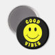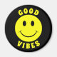 Good Vibes - Cool jaune joyeux visage souriant. Faites descendre le message avec un jaune gras sur le design noir. Good vibes est une expression d'argot pour décrire les sentiments positifs d'une personne, d'un lieu ou d'une situation. Il a suscité des sensations positives, sûres et heureuses. Envoi de bonnes pensées / énergie positive, et cela peut aussi signifier "Juste sur !" et 'Allez-y ! '. Une expression pour de nombreuses occasions.