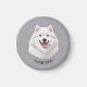 Cet aimant présente une image AI d'un beau blanc samoyé sur arrière - plan gris. Personnalisez-le avec le nom ou la photo de votre animal de compagnie.