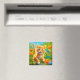 Un mignon chaton à table orange se frolant dans un jardin fleuri aux libellules colorées.