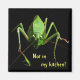 Cet aimant présente un katydid vert effrayant. Les Katydids sont des insectes de taille moyenne à grande. Elles sont généralement vertes, parfois marron, et sont camouflées pour se fondre avec les feuilles sur lesquels elles se nourrissent. Leur très longue antenne les distingue des sauterelles. Vu de près, ils semblent être des aliens de l'espace ! Le texte dit : Pas dans ma cuisine ! Il peut être customisé ou supprimé.