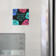 Un aimant de frigo carré en noir avec des roses de couleur pop sur elle en bleu et rose. L'écriture dit "Je m'aime plus que ce qui est dans le réfrigérateur". Vous pouvez modifier la couleur de l'arrière - plan et du texte si vous le désirez et même le libellé en cliquant sur le bouton "personnaliser".