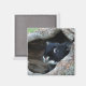 Adorable lapin noir et blanc qui sort la tête du creux d'un arbre.