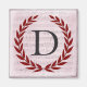 Une délicate couronne de laurier est posée sur une douce feuille vintage rose arrière - plan dans le style romantique classique. Ce design est personnalisé avec le monogramme "D" dans un ton gris fusain.