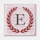 Une délicate couronne de laurier est posée sur une douce feuille vintage rose arrière - plan dans le style romantique classique. Ce design est personnalisé avec le monogramme "E" dans un ton gris fusain.