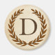 Une délicate couronne de laurier est posée sur un arrière - plan de papier parchemin dans le style romain classique. Ce design est personnalisé avec le monogramme "D" dans une tonalité de sienne riche.