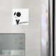 Gros yeux et portant un costume noir et blanc avec cravate arc. Arrière - plan blanc.
