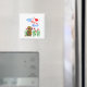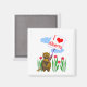 Aimant avec ma conception d'un personnage de castor debout avec quelques fleurs, tenant une pancarte qui dit "J'aime l'Alberta" avec un coeur rouge.