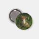 Un aimant avec une photo montrant un mignon petit renard à fourrure rouge et blanche. Entouré de feuilles et d'herbes verdoyants.