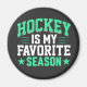 Aimant de hockey avec texte vert et blanc sur un arrière - plan noir dit Hockey is My Favori Season!